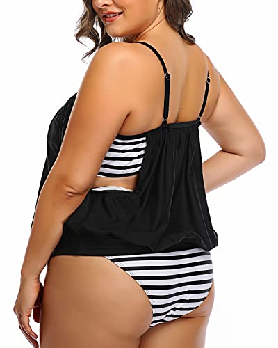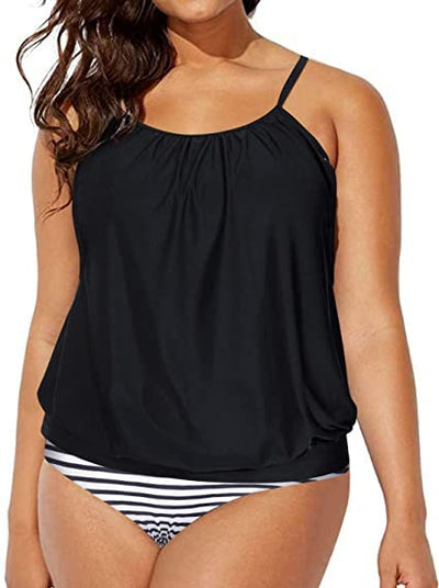 Women's Hide Problem Areas Plus Size Tankini Swimsuits-Black Stripe