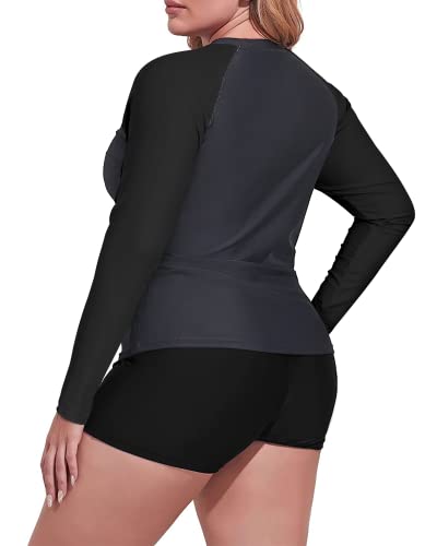 Women's Plus Size Athletic Rash Guard Tankini Boyshorts-Grey And Black
