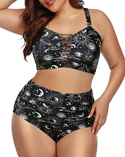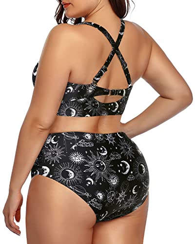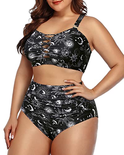 Flattering Ruched Two Piece Bikini For Plus Size Women-Black Sun And Moon
