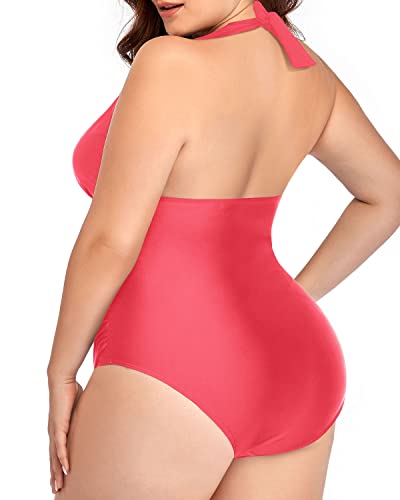 Non-Wired Padded V Neck Plus Size One Piece Swimsuits-Red